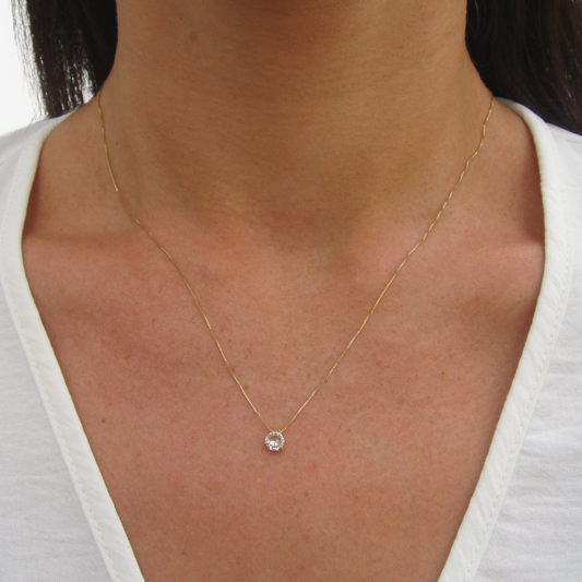 Solitaire Round signature zirconia pendant and earring set bundle in 18k Yellow Gold