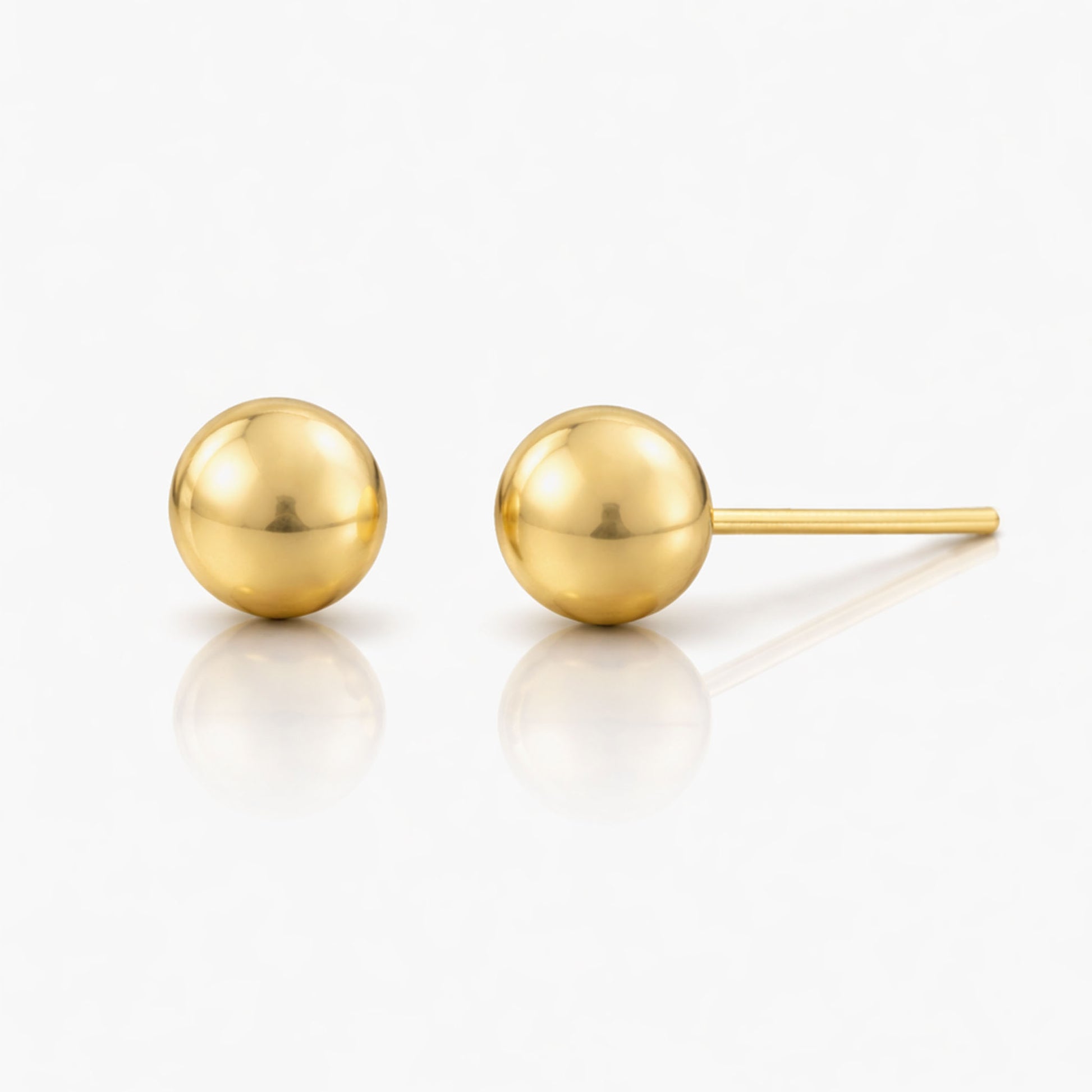 Our 18k gold sphere studs feature a sleek, polished design that adds a touch of elegance to any outfit. They are perfect for everyday wear or special occasions.