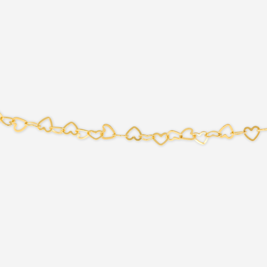 A love chain crafted in 18ct solid gold, formed from delicate heart-shaped links that sit softly along the neckline. Romantic yet minimal, it adds a subtle touch of sentiment to everyday and occasion looks.