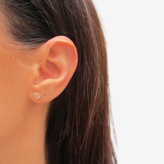 Heart Stud Earrings with Signature Zirconia in 18k Yellow Gold