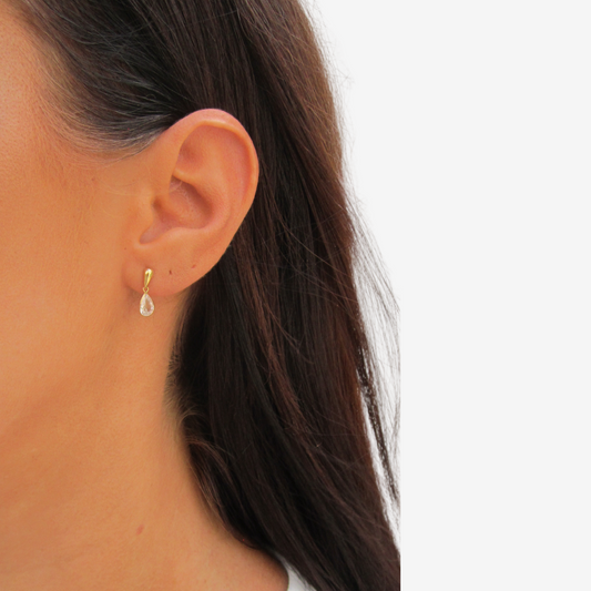 Single Stone Drop Earrings Signature Zirconia in 18k Yellow Gold