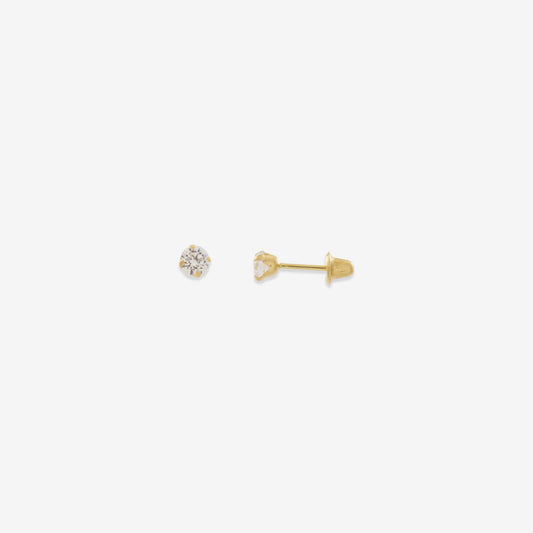 Round Signature Zirconia Stud Earrings 4mm in 18k Yellow Gold